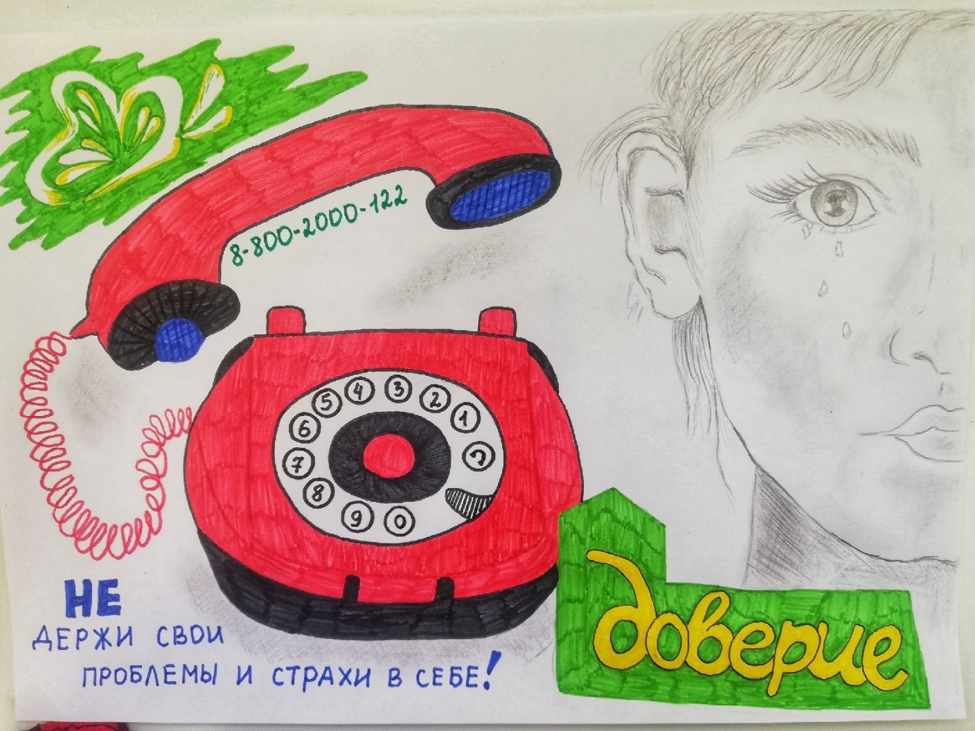 17 мая в России традиционно отмечается Международный день детского «Телефона доверия». Служба «Телефон доверия» - это бесплатная помощь, которая обеспечивает возможность обращения любого человека, ребенка, нуждающегося в психологической поддержке. Главная задача службы – работать на благо детей, которым необходимо внимание. У детей и подростков часто возникают ситуации, в которых трудно разобраться самостоятельно – конфликты, насилие, стресс, одиночество. Появляется желание рассказать о себе что-то важное, выговориться, встретить понимание и сочувствие. Если дети и подростки говорят о своих проблемах родителям – это признак доверия. К сожалению, далеко не все дети доверяют своим близким. В этом случае, инструментом скорой психологической помощи может стать детский телефон доверия, в котором работают обученные специалисты – психологи. В любое время суток психологи-консультанты готовы выслушать, понять, поддержать, помочь найти выход из трудной ситуации. БУ ОО «КЦСОН Болховского района» принял участие в акции «Марафон доверия». В рамках акции «Творческая лаборатория Детский телефон доверия и Я», Матвеев Матвей,8 лет нарисовал рисунок «Преодолевай трудности с нами». | |