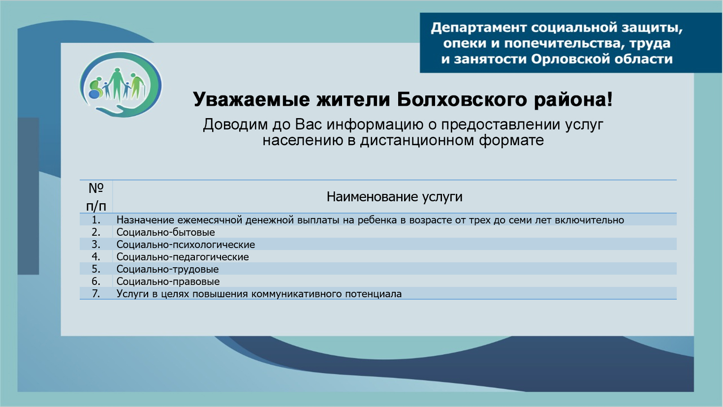 КОМПЛЕКСНЫЙ ЦЕНТР СОЦИАЛЬНОГО ОБСЛУЖИВАНИЯ НАСЕЛЕНИЯ БОЛХОВСКОГО РАЙОНА