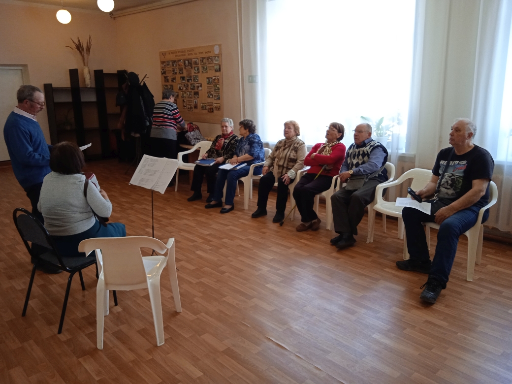 13.04.2021 года в отделении социальной реабилитации и активного долголетия возобновились репетиции музыкального коллектива «Золотаюшки» для лиц, прошедших вакцинацию от коронавируса. После длительного перерыва клиенты отделения начали разучивать песни военных лет к ВЕЛИКОМУ ДНЮ ПОБЕДЫ. Специалисты отделения и пожилые люди очень рады, что они вновь собрались, хоть и не в полном составе, в нашем центре. Занятия отвлекают их от одиночества, показывают, что даже в пожилом возрасте они востребованы.