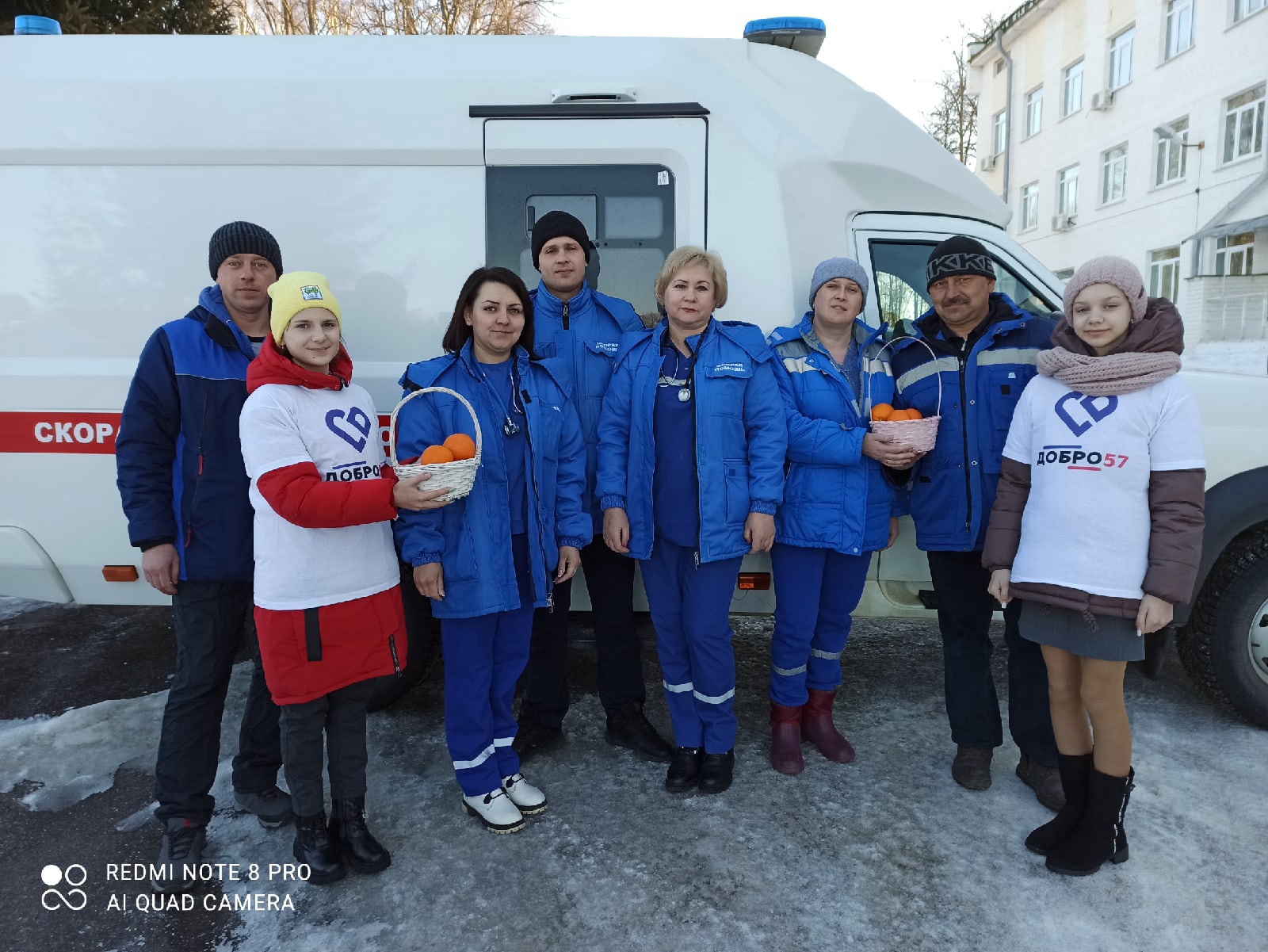 Волонтёры отряда «Доброе дело» в День добрых дел посетили отделение скорой помощи БУЗ Орловской области «Болховская ЦРБ». Бригадам скорой помощи, в знак благодарности за нелёгкий труд, волонтёры подарили апельсины, потому что апельсины — это много витаминов, а значит крепкий иммунитет. Их дружный, светлый, ярко оранжевый цвет – соединяет, сплачивает, символизирует знак пожелания здоровья, поддержку и крепкий иммунитет.