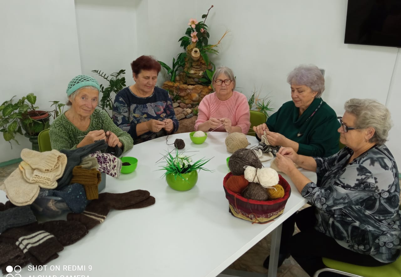В отделении социальной реабилитации и активного долголетия БУ ОО «КЦСОН Болховского района» в рамках Благотворительного проекта «Вяжем на фронт!» рукодельницы кружка «Искусница» связали из тёплой пряжи носки для мобилизованных болховчан. Жещины взялись за спицы, чтобы отправить на фронт тепло своих рук и сердец, каждая петелька связана с любовью.