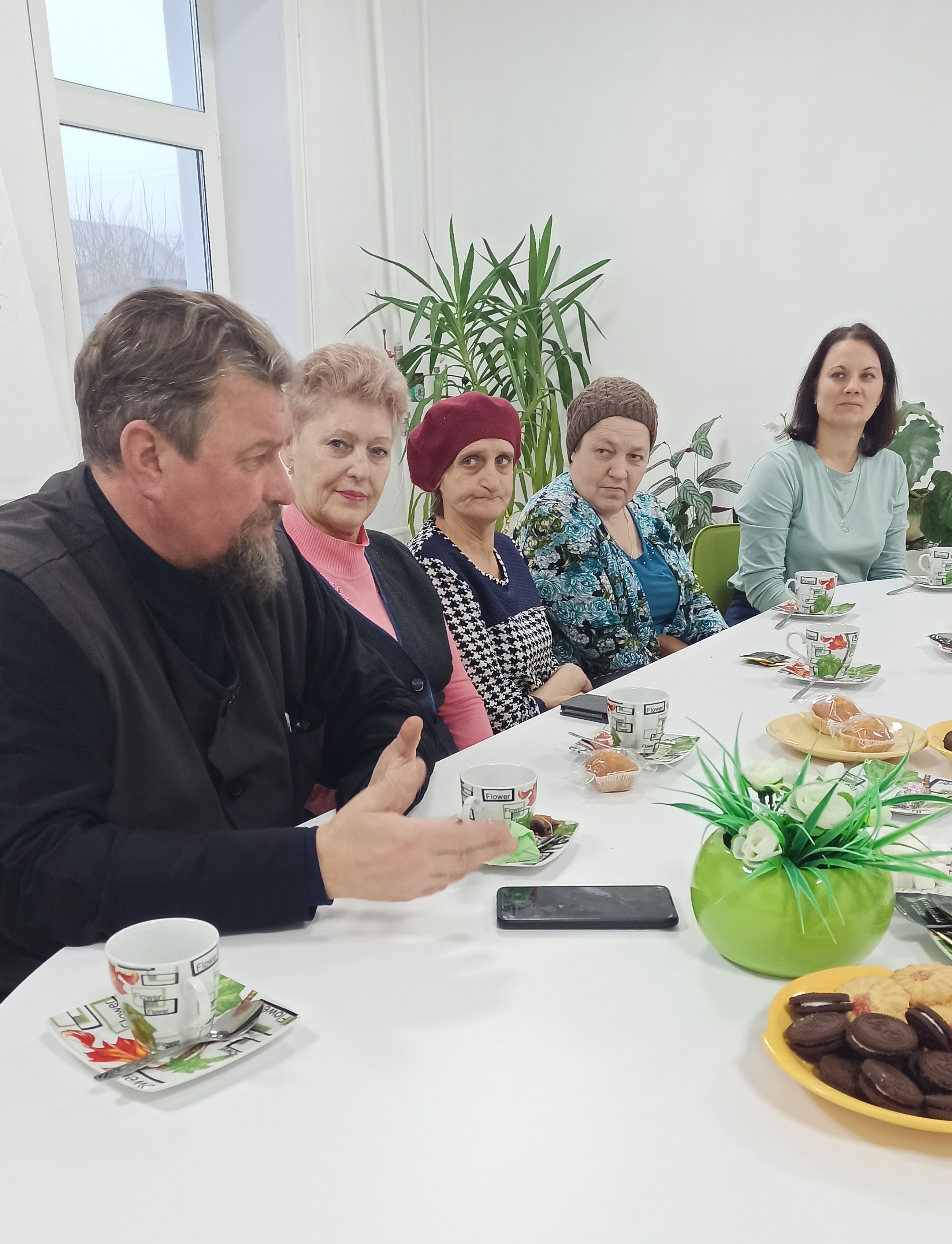 22 ноября в Семейном МФЦ состоялась встреча с протоиереем о. Александром, благочинным Болховского благочиния и мамами мобилизованных ребят. Отец Александр часто бывает в прифронтовой зоне, встречается и общается с нашими ребятами.