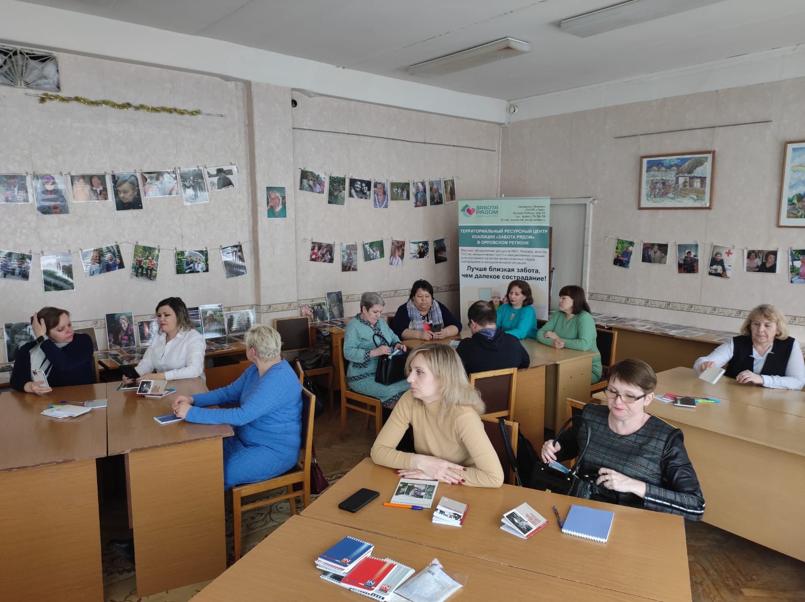 2 марта 2023 года специалисты БУОО «КЦСОН Болховского района» приняли участие в семинаре-практикуме, проведённом Орловской областной общественной организацией общества «Знание» по вопросам заботы о пожилых людях. Т.М. Кононыгина провела экскурсию по учреждению, ознакомила с действующими выставками и экспонатами, рассказала о новых направлениях: солидарность поколений, развитие волонтёрства, помощь семье, жестокое отношение к пожилым; познакомила с инновационными технологиями и техниками. Семинар имел большое практическое значение.