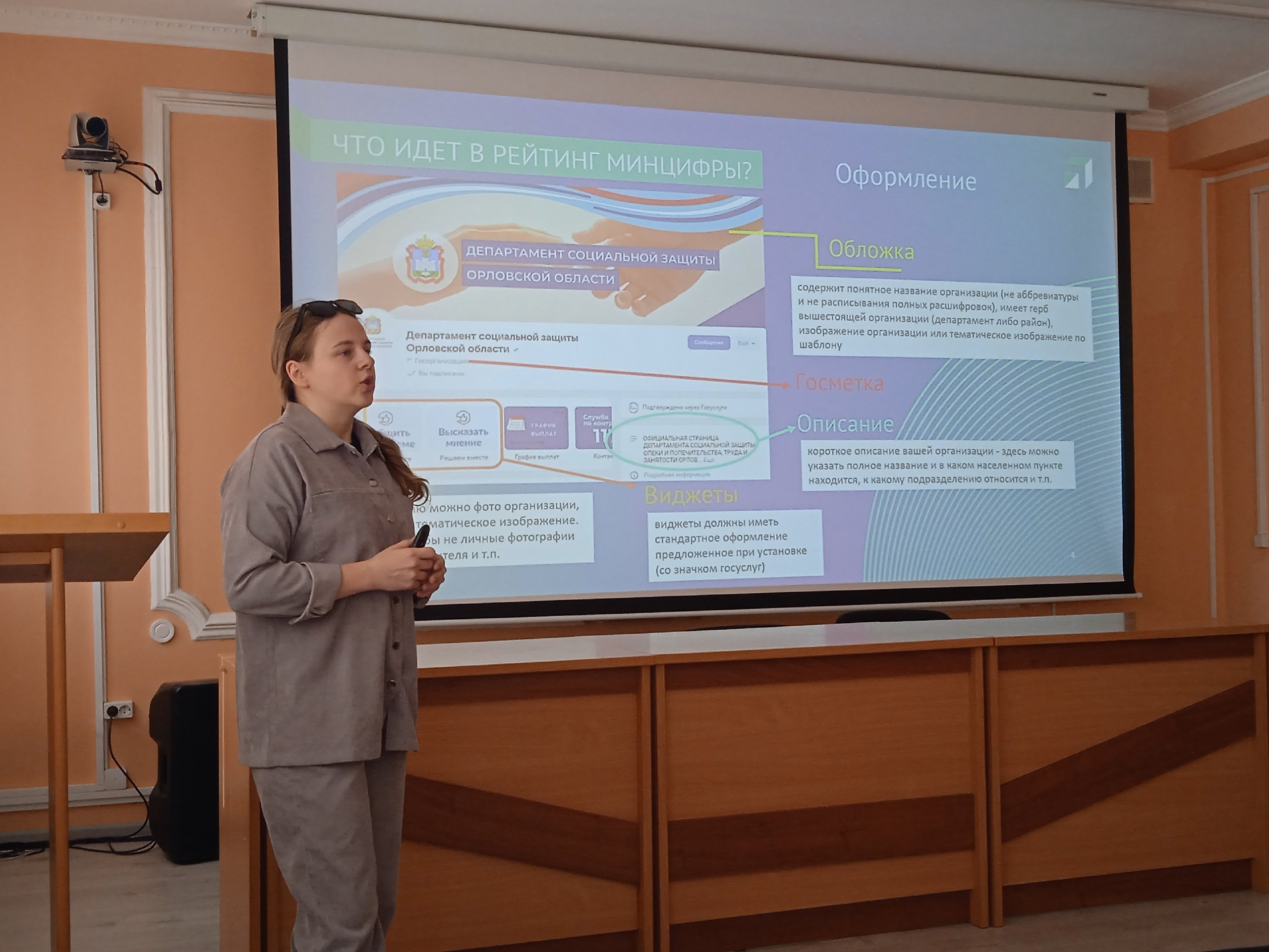 Специалисты Семейного МФЦ приняли участие в обучающем семинаре по работе в госпабликах. Семинар проходил с целью повышения эффективности работы государственных учреждений в социальных сетях. Ведущие мероприятия, специалисты ЦУР Орловской области поделились теоретическими знаниями и практическими советами в сфере цифровой коммуникации.