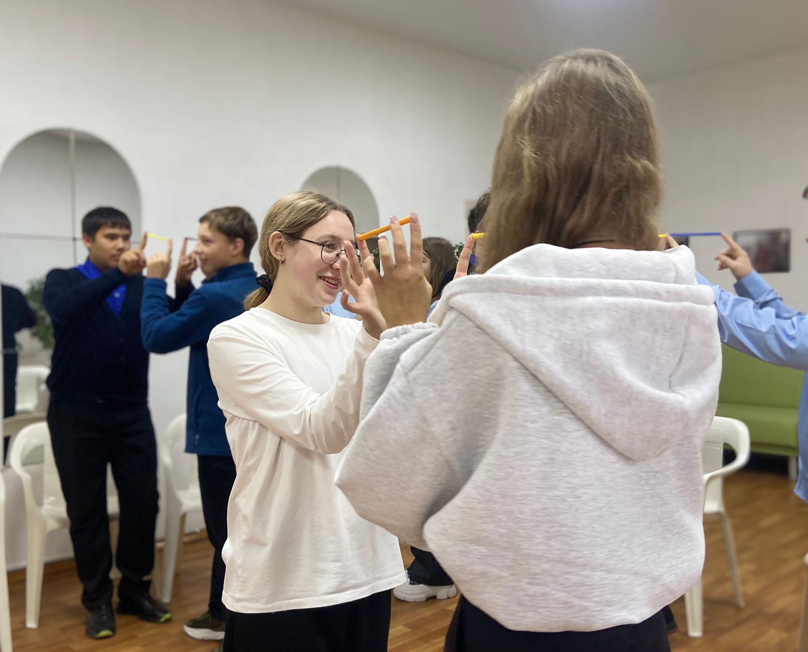 Выполняя различные упражнения под руководством психолога, ребята развивали навыки наблюдательности и саморегуляции, познакомились с различными способами передачи и получения информации без слов.