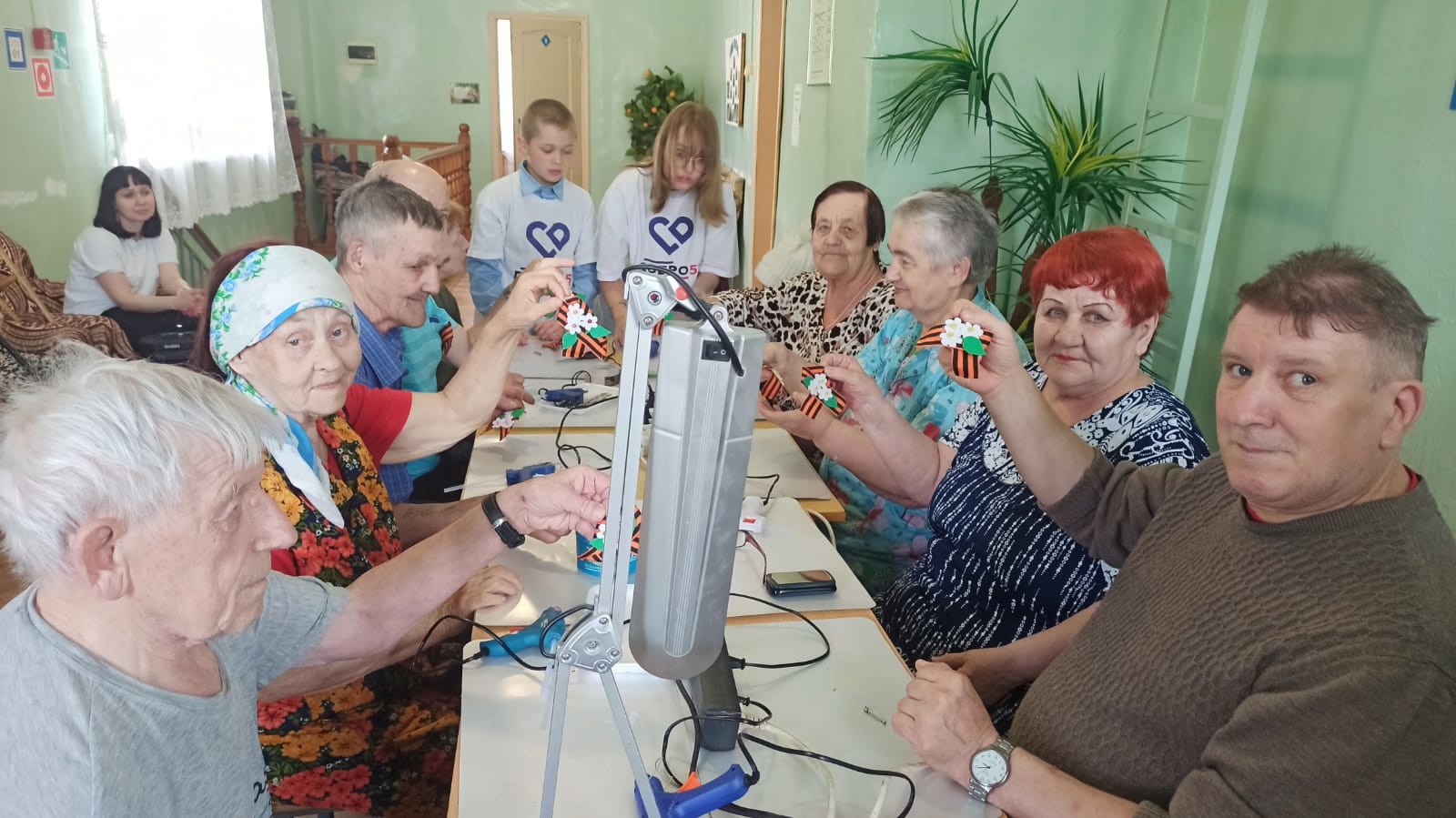 В преддверии Дня Победы специалисты Семейного МФЦ вместе с волонтёрами отряда «Доброе дело» провели с подопечными Дома социального обслуживания "Болховский" творческое занятие по изготовлению броши в технике канзаши. Всем известно, что символом Победы в Великой Отечественной войне служит георгиевская ленточка. У нее есть своя история, в её использовании содержится глубокий исторический смысл.
