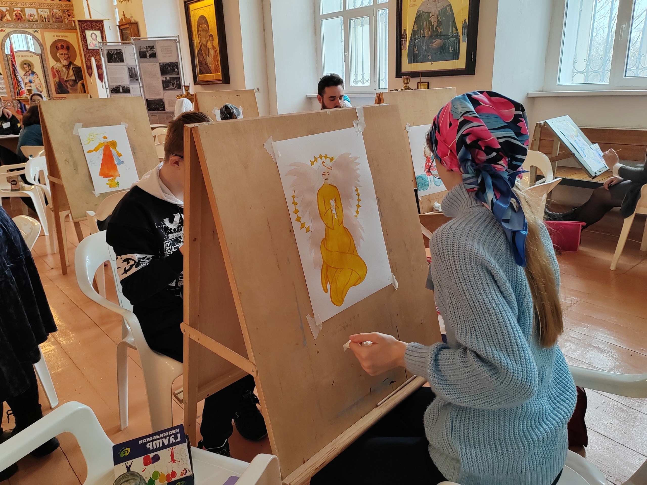 По традиции накануне Дня Матери Семейный МФЦ при поддержке Орловско-Болховской епархии, в лице клирика Спасо-Преображенского собора города Болхова иерея Андрея Сорокина, присоединились к самой светлой и доброй акции "Крылья ангела". Атмосфера величественного храма - Спасо-Преображенского собора, ощущение покоя и умиротворения, вот уже четвертый год подряд наполняет энергией и вдохновляет детей рисовать своего Ангела Хранителя.