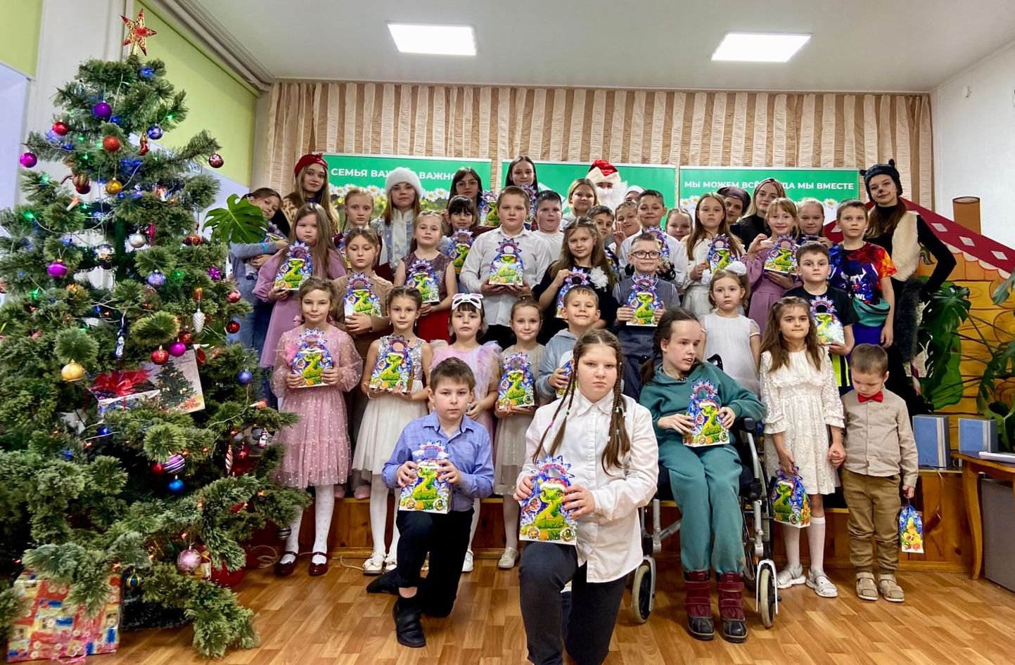 Новый год — это тёплый семейный праздник! Праздник уюта и гармонии, предвкушения чего-то доброго и волшебного. 25 декабря в нашей большой и дружной семье состоялось Новогоднее представление «Проказы Чучуни» с Дедом Морозом и Снегурочкой, с традиционным хороводом вокруг ёлки, с исполнением новогодних песен… и, конечно же, не обошлось без подарков! Дорогие наши семьи! Пусть в новом году в вашем доме будет много радости, уюта и счастья! Пусть каждый день приносит вам только положительные моменты, а ваши дети растут здоровыми и счастливыми! С наступающим Новым Годом! Благодарим волонтеров отряда «Доброе дело» и творческую бригаду «Театр здоровья» МБОУ Гимназия г. Болхова за помощь в организации и проведении нашего праздника!