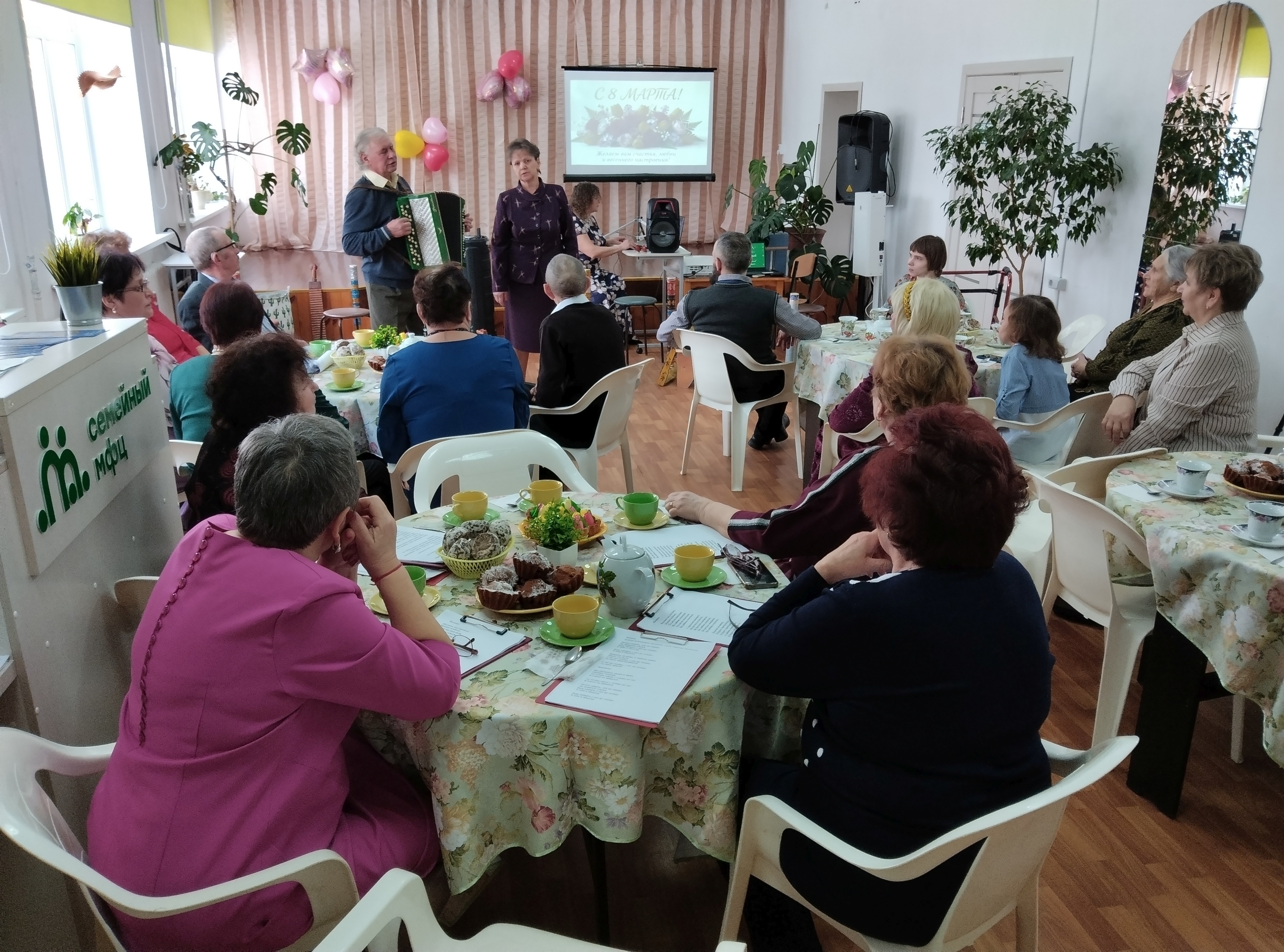 8 Марта – самый любимый весенний праздник. Он наполнен улыбками, подарками и ароматом весенних цветов, а все женщины кажутся в этот день особенно прекрасными и очаровательными. 5 марта 2026 года в отделении социальной реабилитации и активного долголетия БУОО «КЦСОН Болховского района» состоялось праздничное мероприятие, посвященное Международному дню 8 Марта «Весны чудесные мотивы». В зале расположилась выставка творческих работ Елены Ивановой. Праздничная программа стала настоящим подарком нашим милым женщинам. Участники мероприятия блистали своими талантами. В исполнении хора «Берегиня» прозвучали песни «Зорька алая», «Ивушки», «Верила, верила, верю» . Супруги Буяновы исполнили песни «Платье», «Ты куда течешь, речка малая?».Настоящим сюрпризом стало выступление любительского народного ансамбля шумовых и самодельных инструментов «Печки-лавочки». Мероприятие получилось душевным и запоминающимся, наполнив сердца всех присутствующих светлыми и радостными эмоциями.