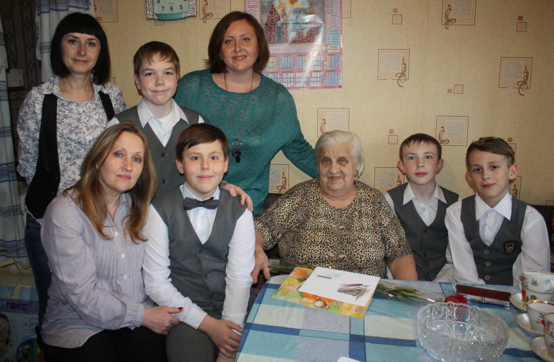 «Примите искренние поздравления с юбилеем. Вы принадлежите к легендарному поколению победителей и созидателей, которое с честью прошло через тяжелейшие испытания военного времени, восстановило страну, создало тот фундамент, который служит нам и сегодня. Ваш жизненный путь, любовь к Родине, сопричастность к ее судьбе – являются достойным примером для молодежи, для всех нас. Желаю Вам доброго здоровья, бодрости духа и всего наилучшего». — эти торжественные строки от Главы Российского государства растрогали именинницу до слёз. Пришедшие в гости волонтёры стали приятной неожиданностью для юбиляра. Лидия Алексеевна принадлежит к поколению тех людей, которые мужественно преодолели тяжёлые испытания, выпавшие на долю нашей Родины. Такой юбилей – важное и значимое событие не только для Вашей семьи – для всех нас. Нам есть с кого брать пример, учиться силе духа и преодолевать трудности. Низкий поклон вам за достойно прожитую жизнь, активное участие в исторических событиях нашей страны, за честный труд на благо Отчизны"- сказали ребята из волонтёрского отряда. Они вручили Лидии Алексеевне букет и памятный подарок! Именинница поблагодарила ребят и пожелала им | |