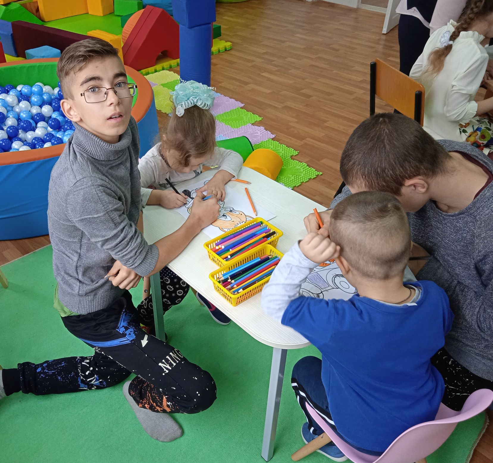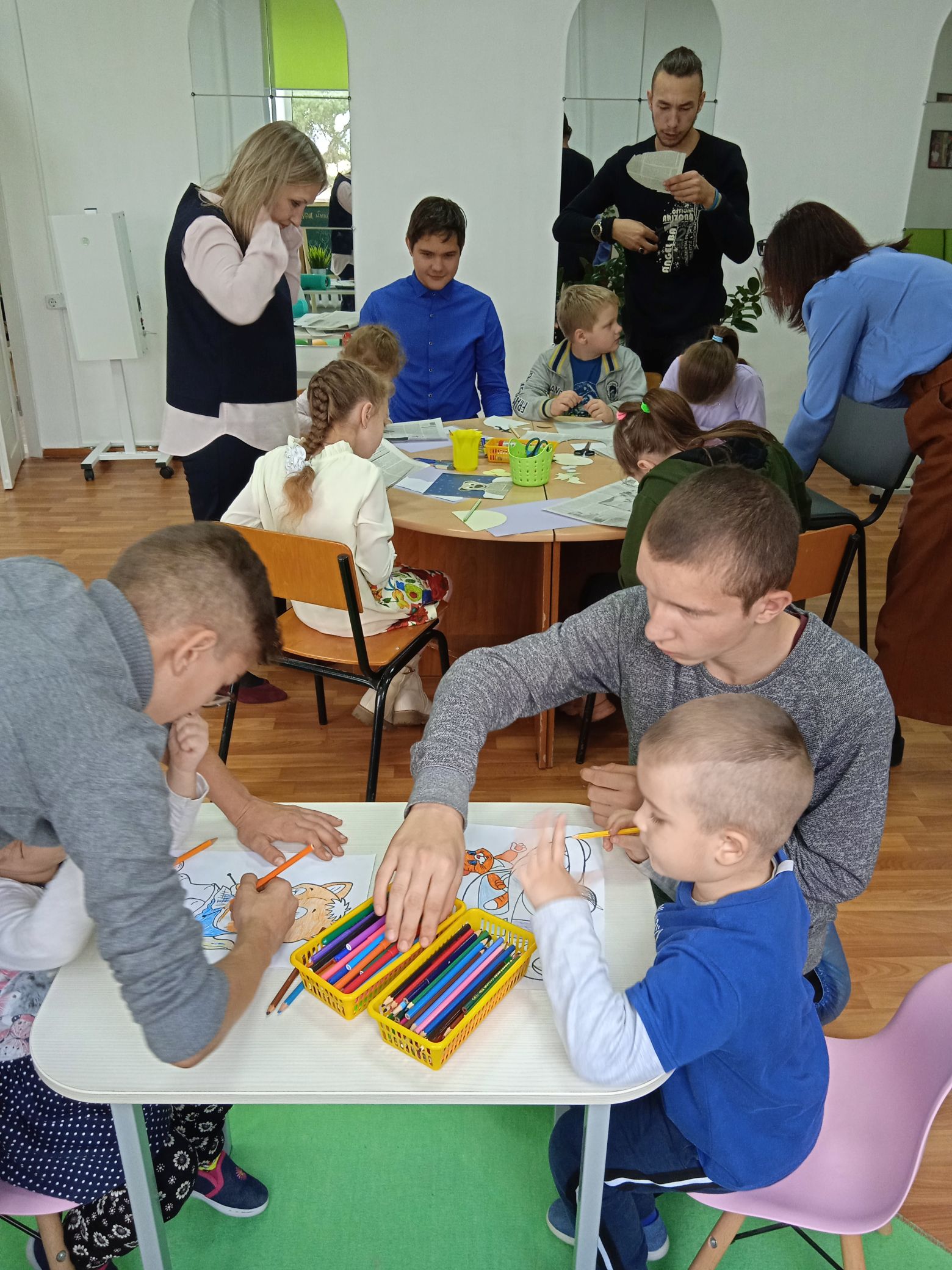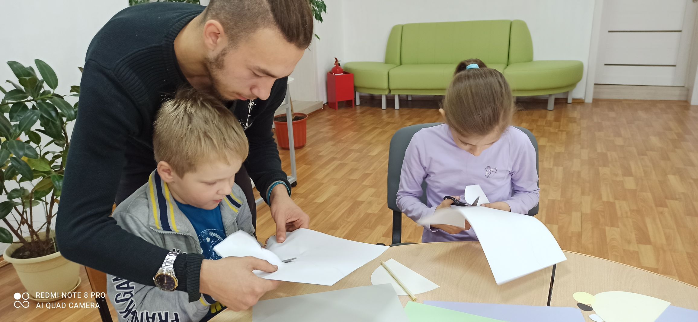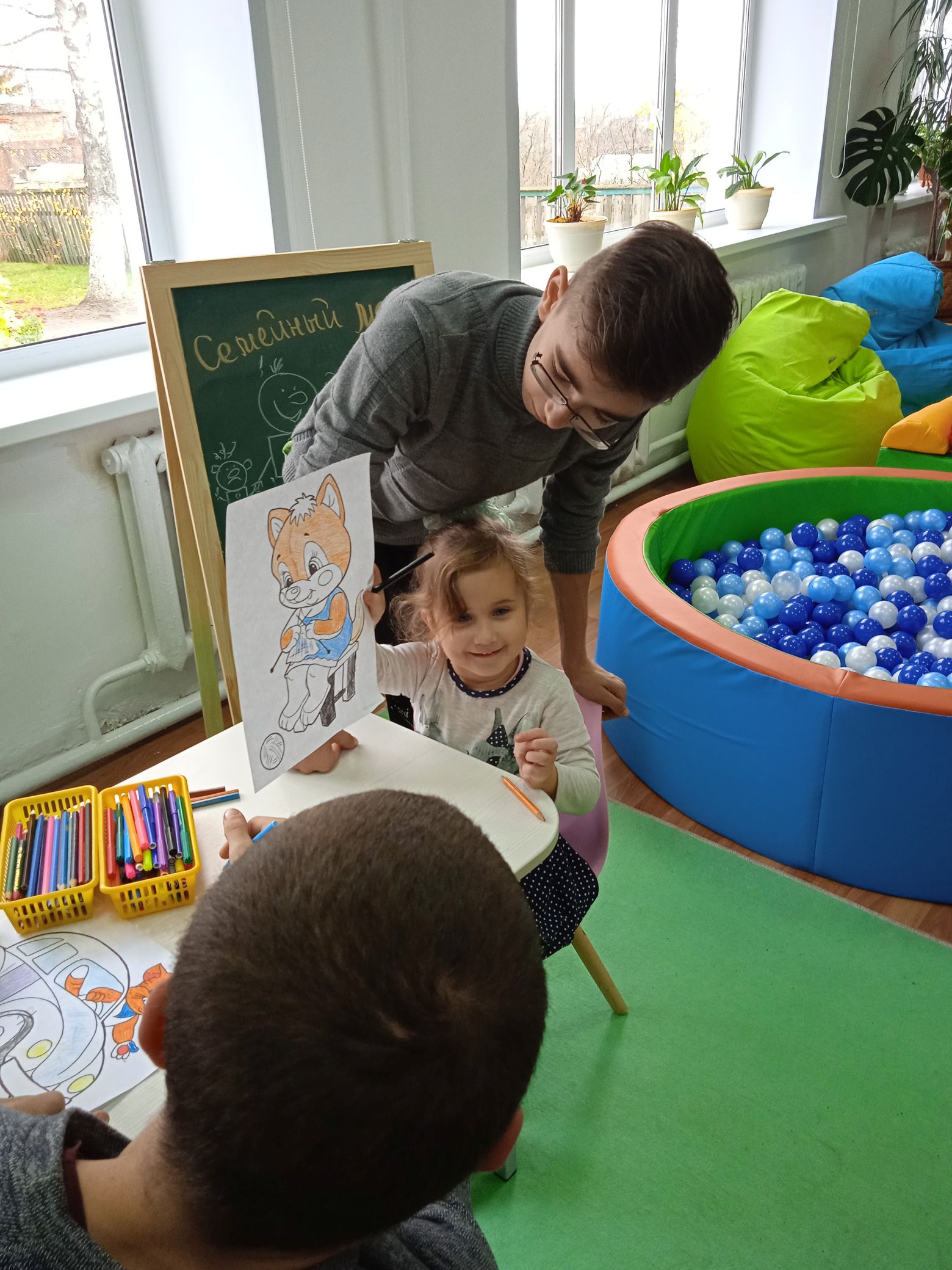 #ДетиПриДеле. В Семейном МФЦ 3 ноября - день Самоделкина. Для детей 5 – 7 лет состоялся мастер-класс «Умка», где ребята познакомились с миром аппликации. Наставниками были Саша Радичкин и Ярослав Глухов, волонтёры отряда «Доброе дело». Оказалось, что изготовить аппликацию совсем несложно! Нужно лишь немного терпения, внимания и усидчивости. Пока старшие ребята трудились над «Умкой» - младшие братишки и сестрички очень умело справлялись с раскрасками. Все трудились с большим удовольствием! Особую радость юным гостям доставили переменки в игровой зоне. Маленькие творцы были очень довольны результатом своих трудов и уходили из стен Семейного МФЦ в приподнятом настроении. P.S. А в это время, у мам была возможность отдохнуть за чашкой чая, пообщаться, рассказать о своих интересах, задать вопросы психологу.