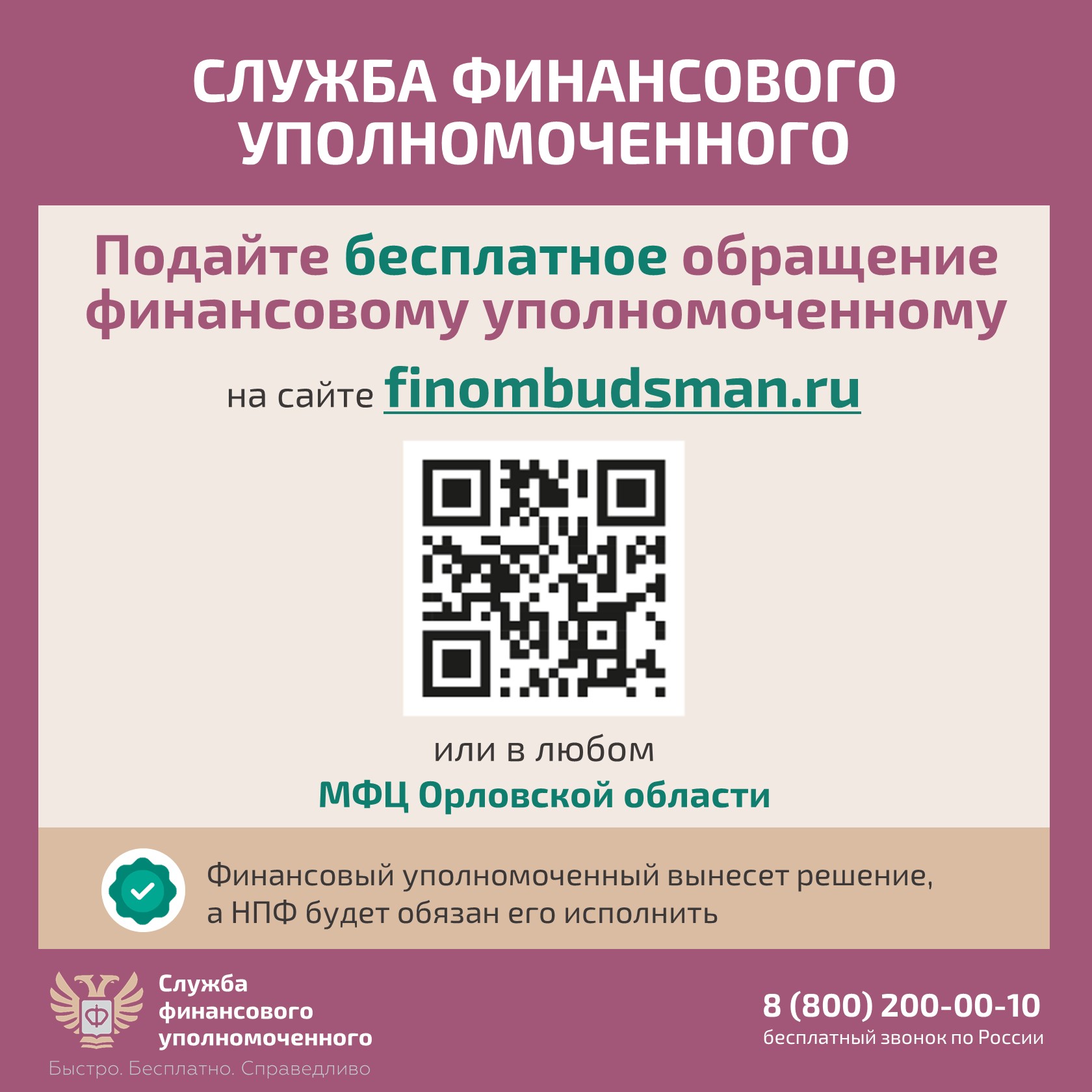 Финансовый уполномоченный назначит почерковедческую экспертизу Вашей подписи в договоре об обязательном пенсионном страховании и заявлении о смене страховщика. Для проведения экспертизы Вам потребуется предоставить финансовому уполномоченному образцы своей подписи и документы, содержащие Вашу подпись. Если Вы заключили с НПФ соглашение о том, что Ваш текущий договор об обязательном пенсионном страховании является незаключенным, Вам также необходимо обратиться к финансовому уполномоченному для завершения процедуры возврата пенсионных накоплений предыдущему страховщику по обязательному пенсионному страхованию. 3. Получите решение финансового уполномоченного по Вашему обращению Решение финансового уполномоченного также будет направлено в СФР и в НПФ. Решение подлежит обязательному исполнению НПФ не позднее 30 дней после его вступления в силу. СФР по результатам исполнения НПФ решения финансового уполномоченного вносит изменения в единый реестр застрахованных лиц по обязательному пенсионному страхованию. После этого в Вашей выписке о состоянии индивидуального лицевого счета в качестве текущего страховщика по обязательному пенсионному страхованию будет указан страховщик, которому возвращены средства пенсионных накоплений (СФР или НПФ, из которого пенсионные накопления были переведены без Вашего согласия). Ознакомиться с подробной информацией можно на сайте finombudsman.ru в разделе «База знаний» по ссылке. О том, как защитить себя при незаконном переводе пенсионных накоплений, читайте также в карточках