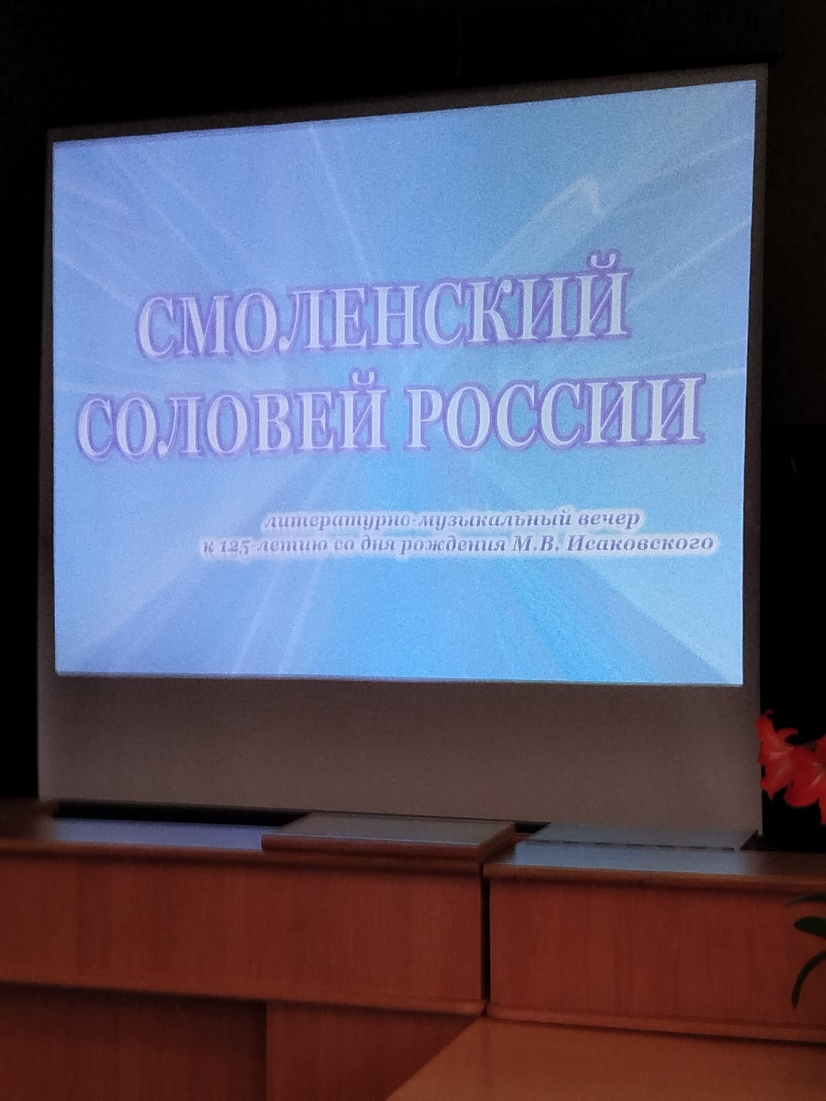 Клиенты отделения социальной реабилитации и активного долголетия БУОО «КЦСОН Болховского района» 27 марта посетили литературно-музыкальный вечер «Смоленский соловей», посвященный 125-летию со дня рождения выдающегося поэта-песенника Михаила Васильевича Исаковского. Присутствующие узнали о ключевых моментах биографии и познакомились с его поэтическими произведениями. Настоящим украшением вечера стало исполнение песен, написанных на стихи М. Исаковского, народным любительским коллективом «Вдохновение» совместно со всем залом: «Катюша», «Дайте в руки мне гармонь», «И кто его знает», «До свиданья, города и хаты», «Дан приказ: ему -на Запад, ей-в другую сторону», «Огонёк», «В лесу прифронтовом», «Лучше нету того цвету», «Услышь меня, хорошая», «Одинокая гармонь», «Каким ты был, таким остался», «Ой цветёт калина», «Враги сожгли родную хату», «Будьте здоровы, живите богато» . В зале была оформлена выставка «Лирика народных чувств», на которой были представлены сборники стихов поэта и литература о его жизни и творчестве, с которой познакомились все присутствующие.