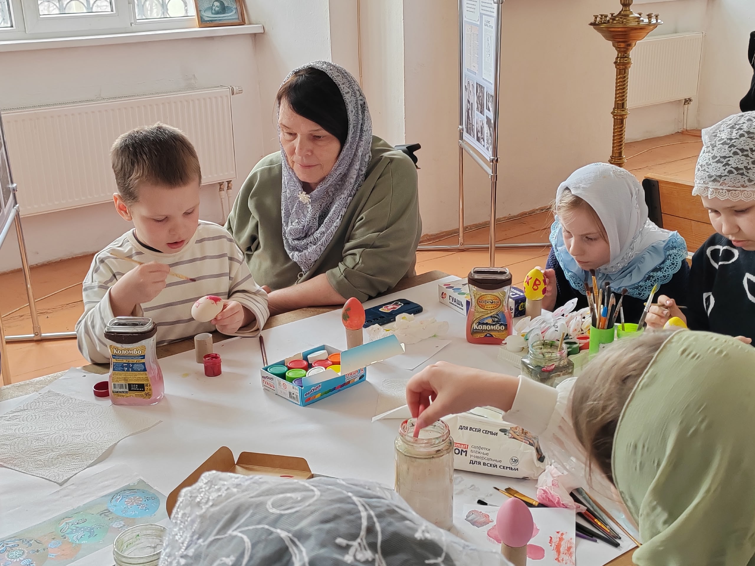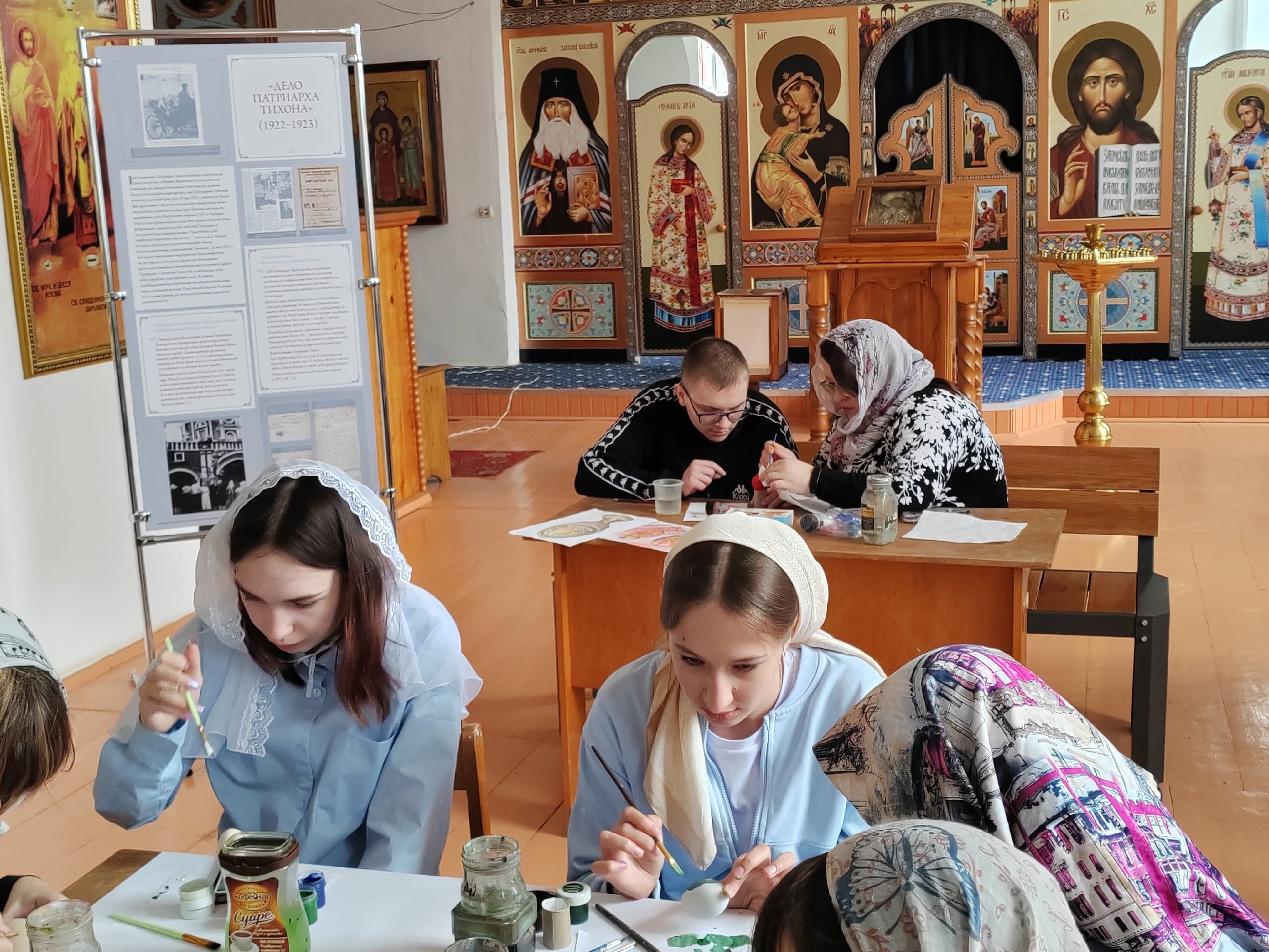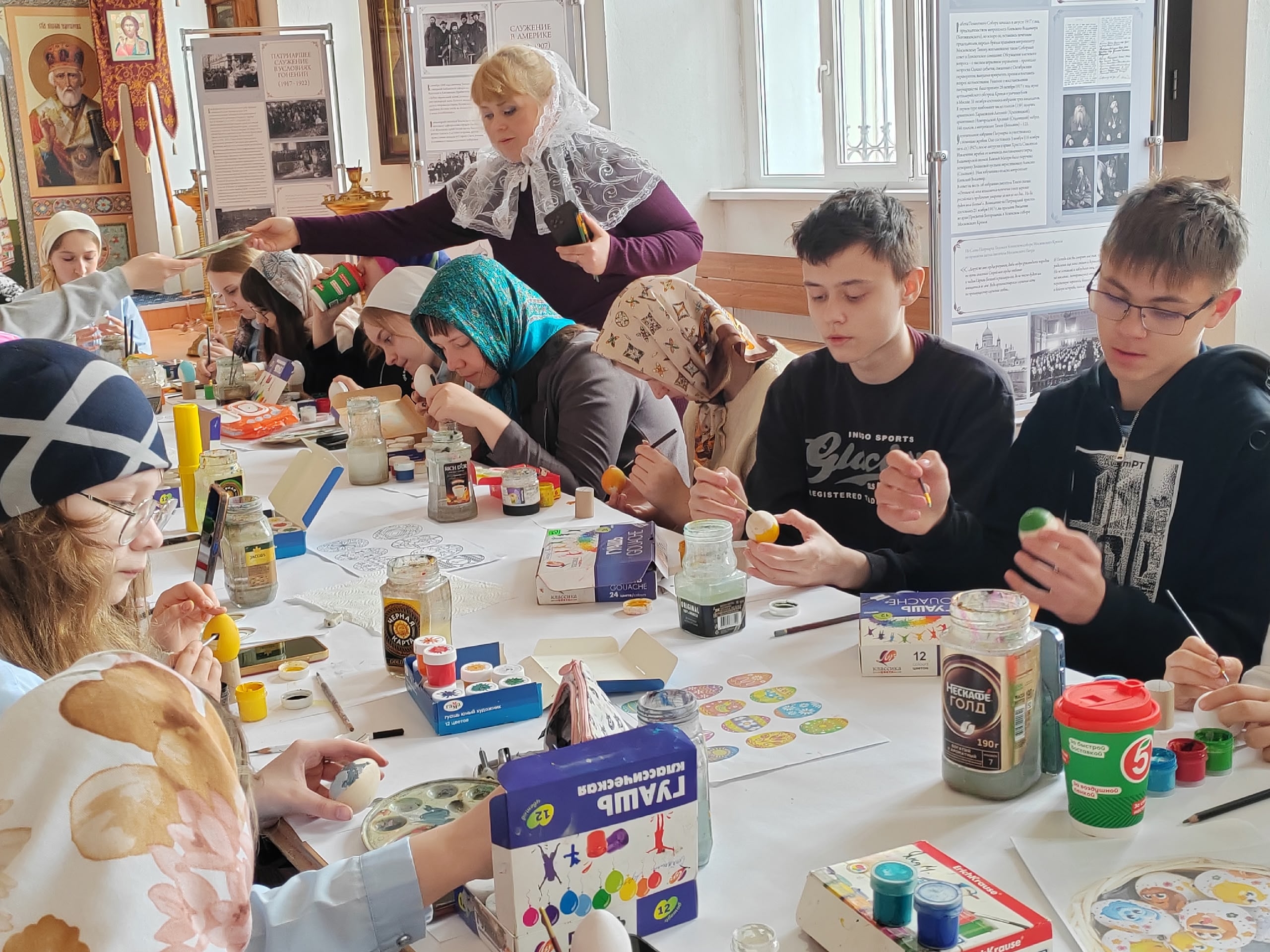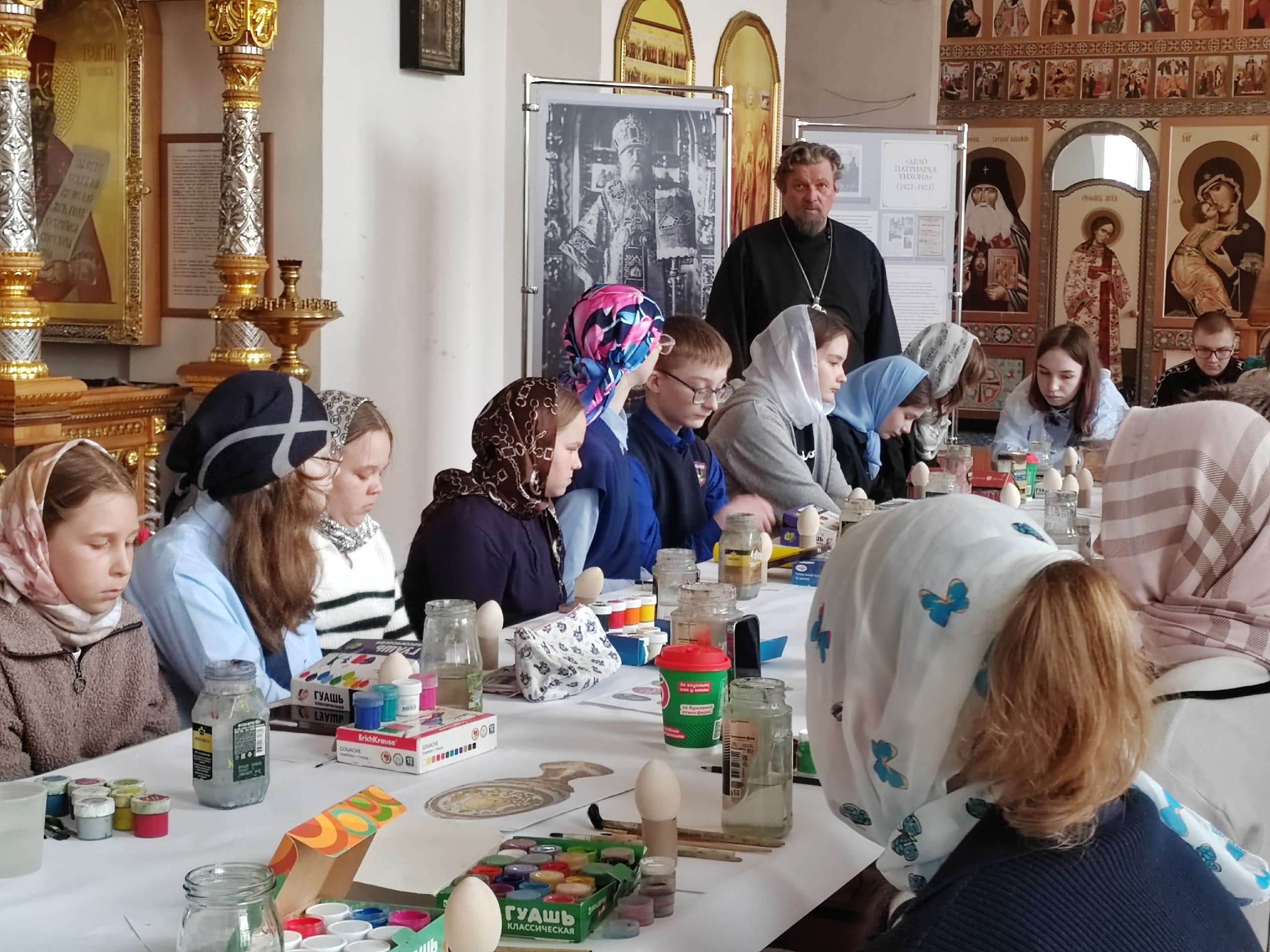 На пороге один из самых светлых и трепетных дней — Пасха. Словно сама весна шепчет о чуде, и в каждом доме, готовясь к празднику, красят яйца, хранящие в себе тайну вечной жизни и обещание нового начала. По благословению благочинного храмов Болховского округа протоиерея Александра Кузнецова под сводами Спасо-Преображенского собора в атмосфере мира и добра прошел мастер-класс по росписи пасхальных деревянных яиц.