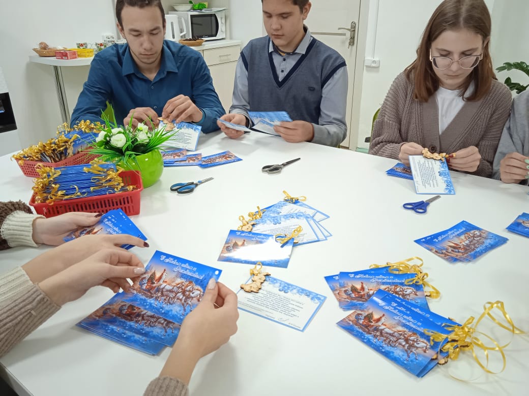 Новый год – семейный праздник. Он собирает всех родных и близких, погружает в атмосферу надежды и ожидание лучшего. Но далеко не каждый из нас является членом большой семьи, где все заботятся друг о друге. И больше всех дефицит внимания испытывают пожилые, часто одинокие люди. И как правило, именно в праздники, когда вокруг много веселья, одиночество чувствуется наиболее остро. Для того, чтобы привнести праздничное настроение в повседневную жизнь пожилых людей, в Комплексном центре социального обслуживания населения Болховского района была подготовлена акция «Поздравление пожилых людей», к которой активно подключились волонтеры отряда «Доброе дело». Были подготовили поздравительные открытки с сюрпризом в виде символа года для всех пожилых людей, состоящих на обслуживании. Внимательное отношение к тем, кто рядом с нами непременно дарит тепло человеческого участия и общения, обогащая нас