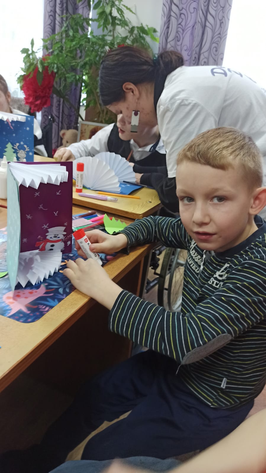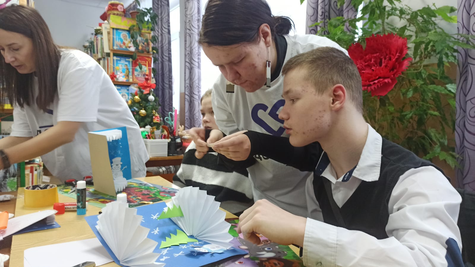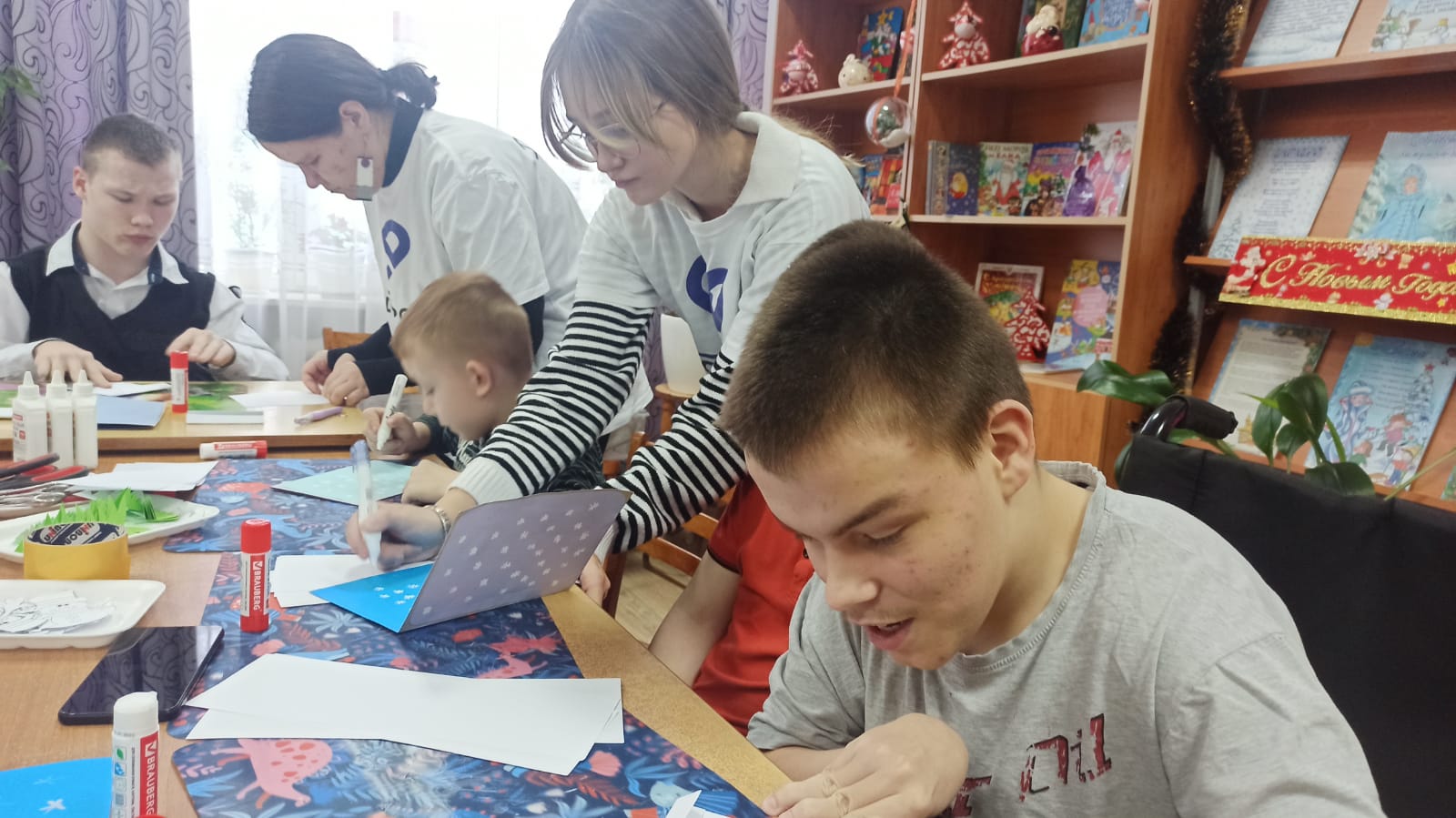 Новый год — время подарков и поздравлений. Каждому приятно получать подарок, но не менее приятно их дарить. Подарки, сделанные своими руками, обладают особой ценностью — они дарят праздник не только тому, кто их получает, но и тому, кто их создает! 13 декабря специалисты Семейного МФЦ вместе с волонтёрами отряда «Доброе дело» провели с воспитанниками КСУ СО ОО "Центр "Остров детства" мастер-класс по созданию креативной новогодней открытки. Ребята изготовили праздничные открытки своими руками, используя для этого самые различные материалы – цветной картон, бусинки и другую самую разнообразную декоративную мелочь, проявили творчество, фантазию и мастерство! Каждая открытка получилась по-настоящему волшебной и уникальной! По окончанию мероприятия волонтеры передали ребятам открытки, сделанные первоклассниками МБОУ «Гимназия г.Болхова» в рамках акции "Добрая открытка доброму другу" | |