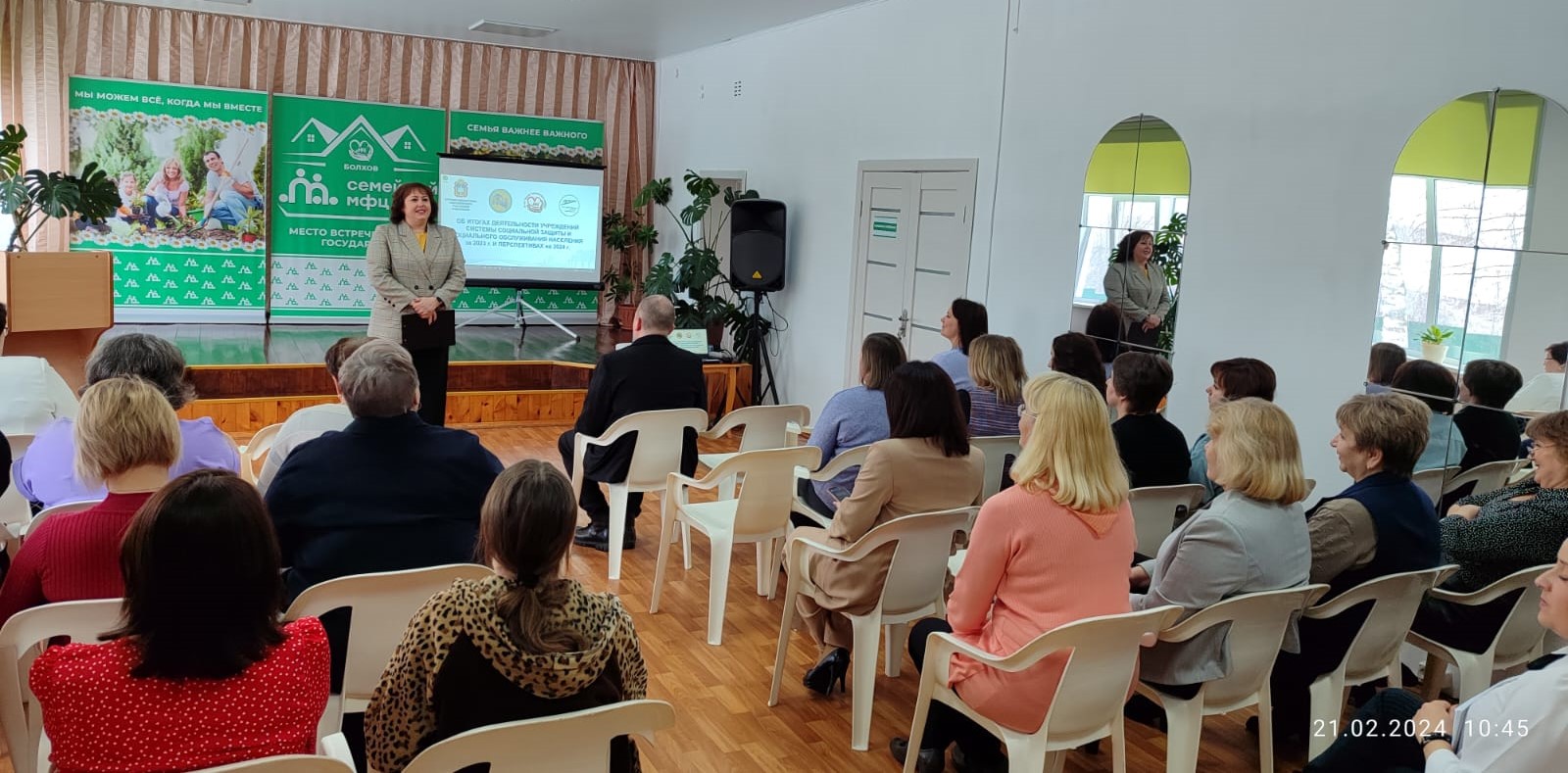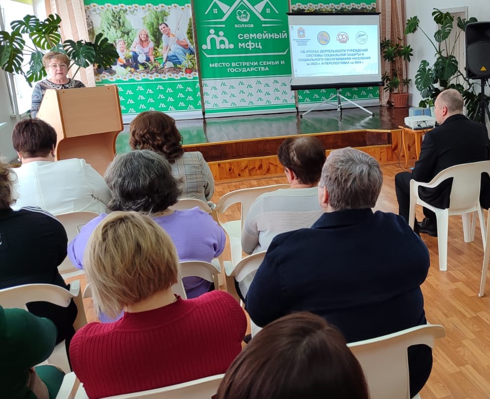 На площадке Семейного МФЦ прошло итоговое собрание трудовых коллективов: БУ ОО "КЦСОН Болховского района", филиала по Болховскому району КУ ОО "Областной центр социальной защиты населения" КУ ОО "ОЦСЗН" и КУ ОО "ЦЗН Болховского района". Руководители учреждений выступили с докладами об итогах деятельности учреждений системы социальной защиты и социального обслуживания населения за 2023 год и перспективах на 2024 год. Начальник отдела мониторинга рынка труда и программ занятости Управления труда и занятости Департамента социальной защиты Орловской области Андрей Юрьевич Долженков поблагодарил всех участников встречи за слаженную и эффективную систему взаимодействия учреждений системы социальной защиты и социального обслуживания населения, приоритетным направлением деятельности которых является повышение качества предоставляемых услуг в рамках действующего Федерального закона №442-ФЗ от 28.12.2013 «Об основах социального обслуживания граждан в Российской Федерации».