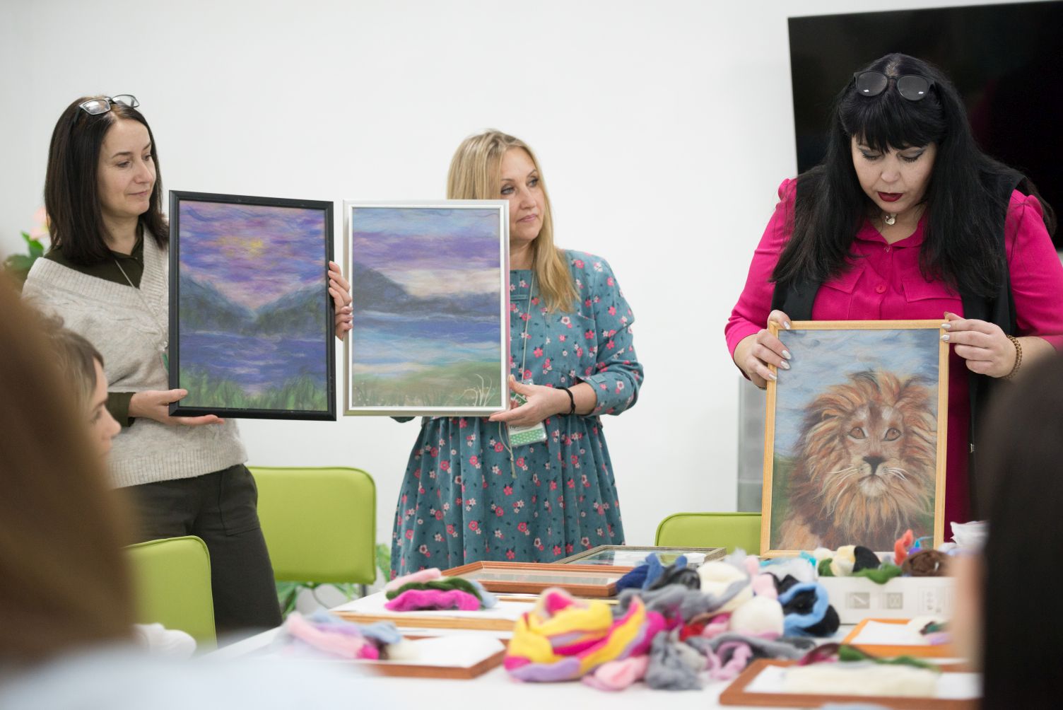 Сегодня в рамках детско-родительского клуба «Окно в мир» родители под руководством преподавателя Болховского педагогического колледжа Костюк К.А. осваивали технику рисования шерстью. Такой досуг позволил отдохнуть от домашних забот и непростых будней родителям особенных детей и женщин, чьи родные и близкие сейчас находятся в зоне СВО. Создание картин в технике шерстяная акварель способствует релаксации и позволяет отвлечься от потока повседневных проблем. Удивительно, но тепло шерсти способно исцелять не только тело, но и душу. Работа с таким материалом благотворно влияет на наше эмоциональное состояние. А еще это прекрасная возможность уделить время самому себе, пообщаться и обменяться опытом.