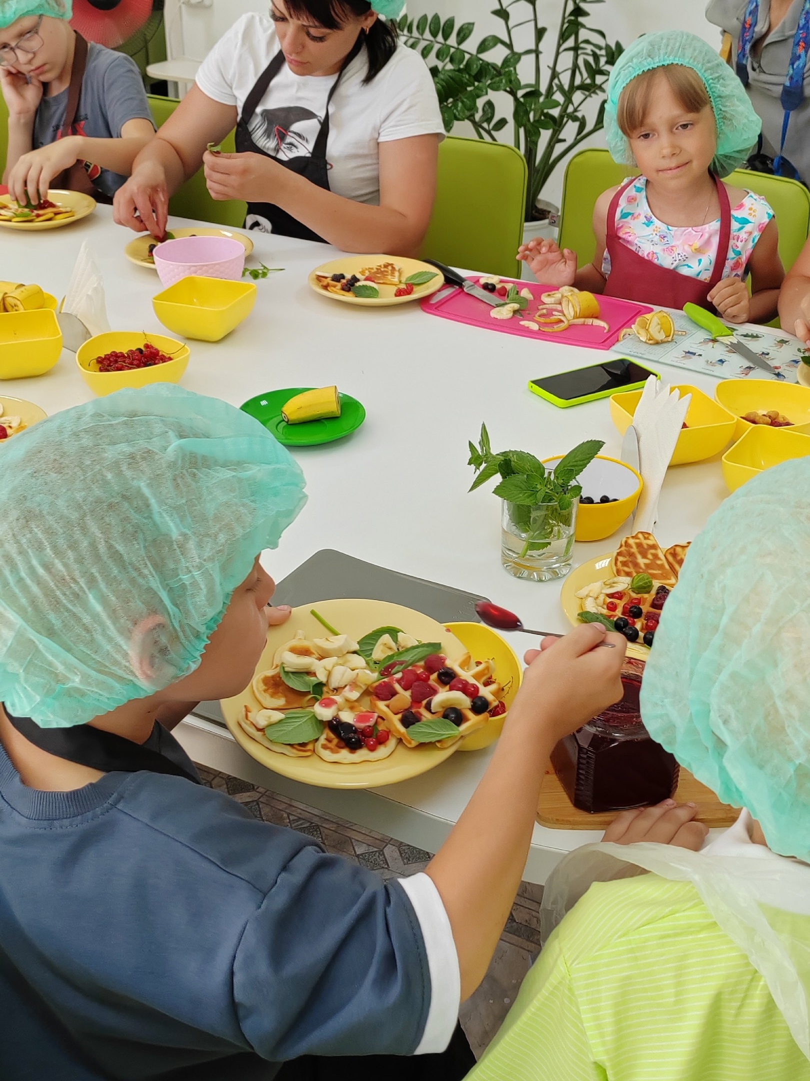 Сегодня в Семейном МФЦ для семей участников СВО состоялся кулинарный мастер-класс по приготовлению одного из любимых детских лакомств - венских вафель. Девчонки и мальчишки, а также их родители под руководством Елены Подольской узнали в какой последовательности нужно совмещать ингредиенты и как правильно замешивать тесто для вафель. Все участники с удовольствием погрузились в процесс приготовления, а после того как вафли были готовы, украсили их свежими ягодами, фруктами и сахарной пудрой. Мастер-класс закончился чаепитием и дегустацией вафель собственного приготовления. Благодарим Елену Подольскую за увлекательный мастер-класс и надеемся на дальнейшее сотрудничество! Друзья! Делимся с вами фотографиями с нашего кулинарного мастер-класса!