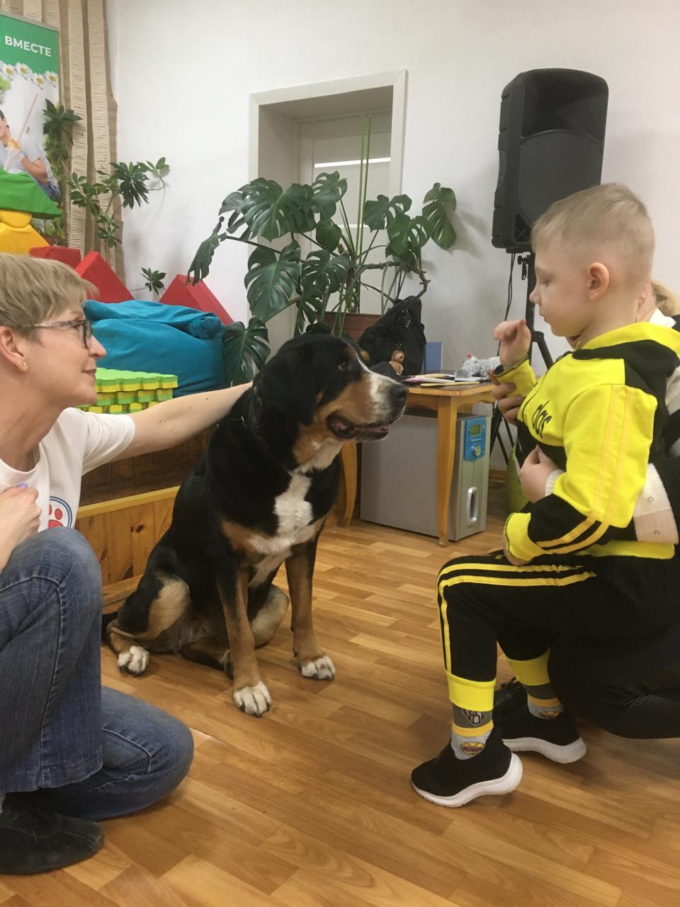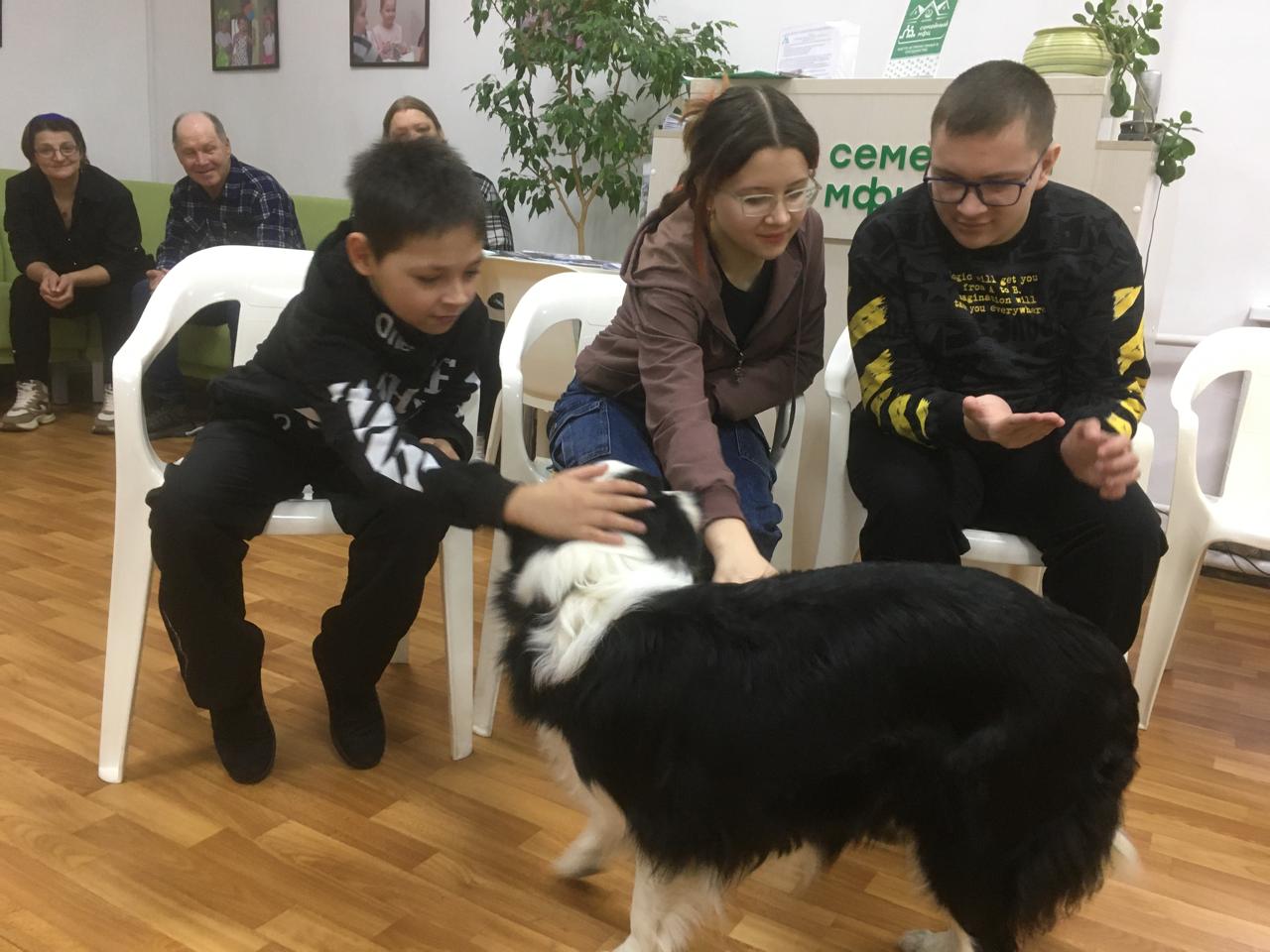 Большая интерактивная программа: интересные истории, живое общение с собаками, мастер-класс по трюковой дрессировке, показательные танцевальные выступления. Участники детско-родительского клуба «Окно в мир» остались в восторге от мероприятия, получив большой заряд положительных эмоций и впечатлений! Канистерапия – это не просто объятия с большой и доброй собакой. Благодаря непосредственному контакту и общению с животным уходит стрессовое состояние, напряжение, чувство страха и тревоги. Занятия с собакой помогают стабилизировать эмоции, развить доверие к окружающим и уверенность в себе.