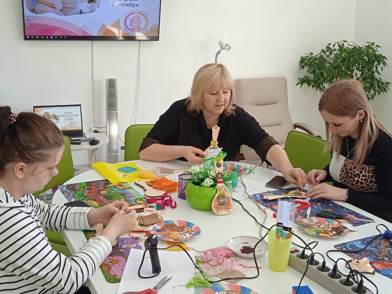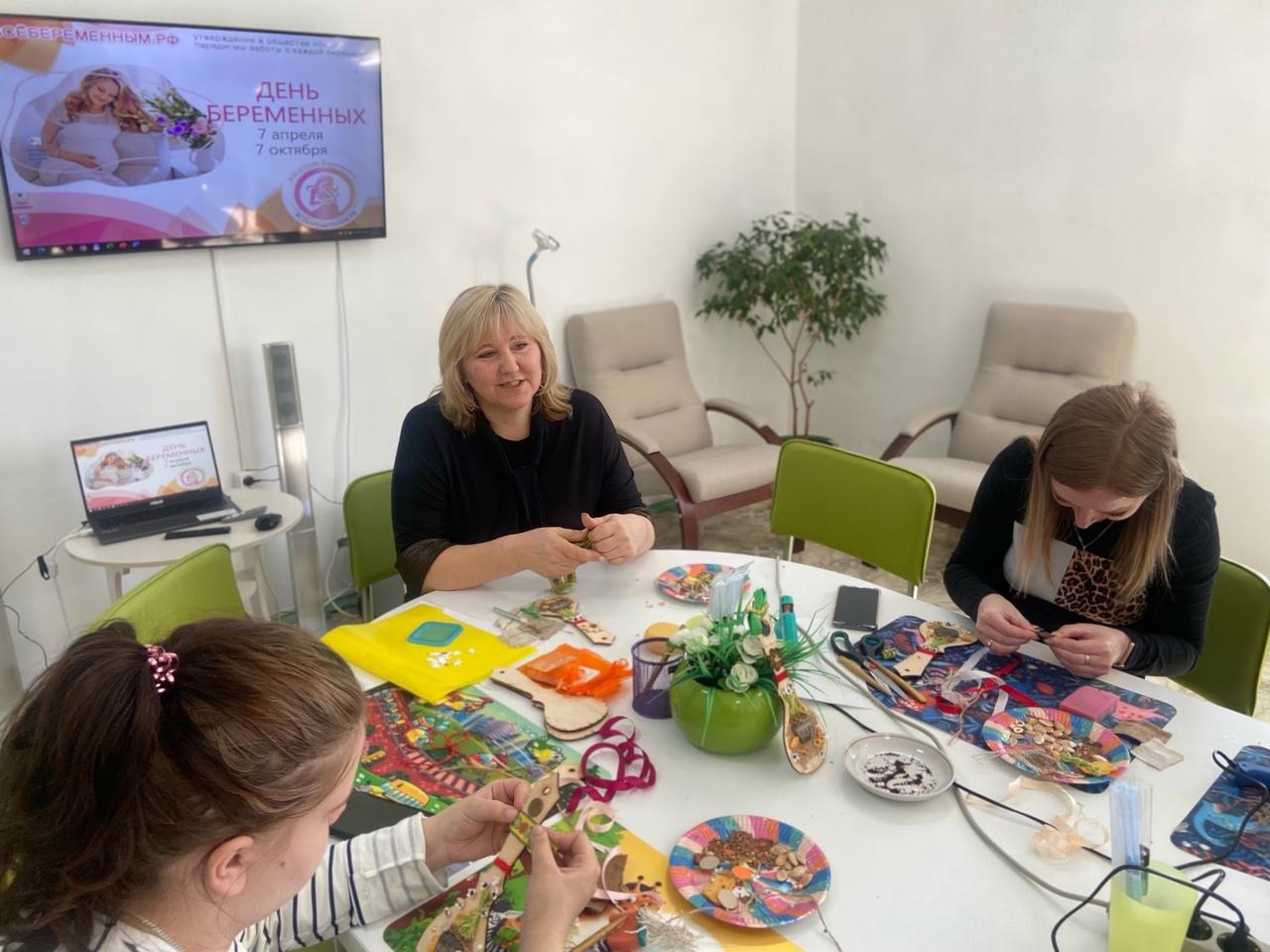 Совсем недавно в России появился особенный праздник «День беременных». Беременность — это особенное время для женщины. Поэтому очень важно наполнить его теплотой, радостью и прочими приятными эмоциями. Поможет в этом творчество. Сегодня в Семейном МФЦ воспитатель по изобразительной деятельности детского сада №4 Елена Анатольевна Азаренко провела с участницами арт-терапевтическое занятие по изготовлению ложки-оберега, рассказала об истории его происхождения и значении каждого элемента украшения ложки.