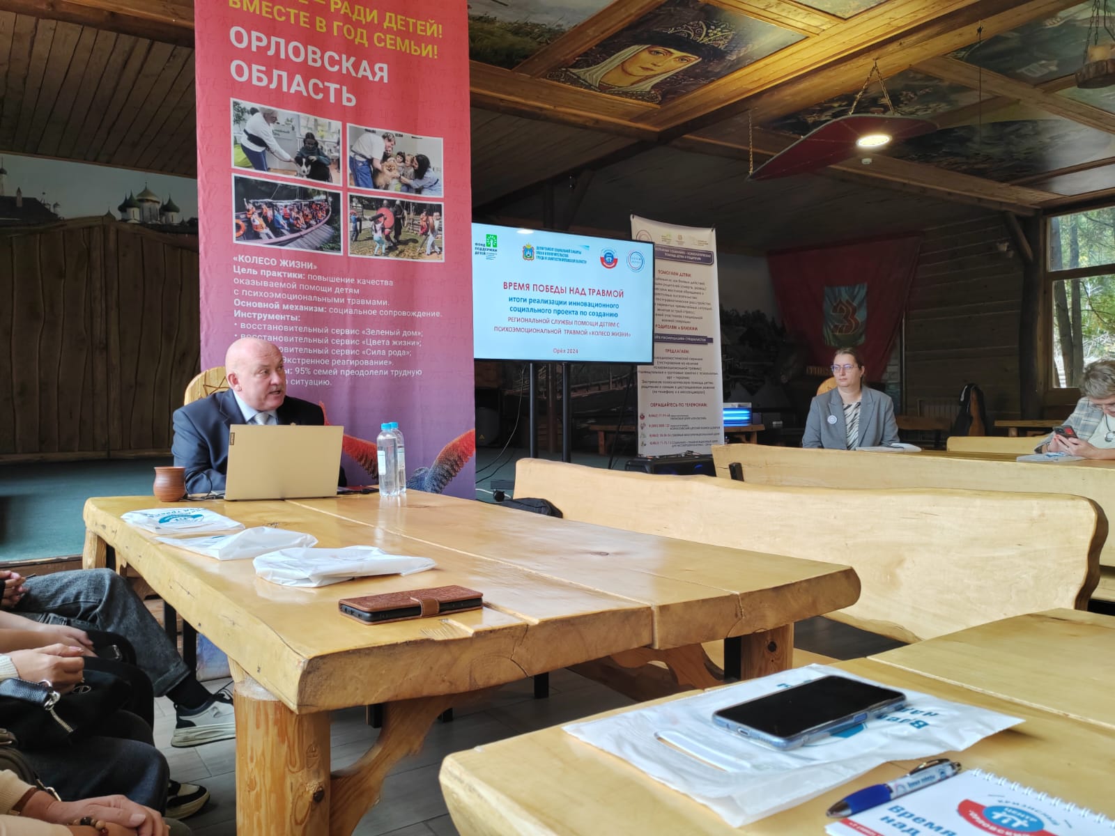 В Орле подвели итоги реализации инновационного социального проекта по созданию региональной службы помощи детям с психоэмоциональной травмой «Колесо жизни». Руководитель проекта, психолог высшей квалификационной категории Вадим Тепляков озвучил основные результаты реализации проекта и поблагодарил всех к нему сопричастных.В теплой дружеской атмосфере Знаменская Богатырская Застава г. Орёл участники мероприятия поделились эмоциями от участия в проекте, наметили дальнейшие перспективы развития социальной помощи. Всем участникам проекта были вручены грамоты, благодарности за активное участие в инновационном социальном проекте и памятные подарки. Психологи Кризисного центра помощи женщинам и детям "Орловский" провели мини-тренинг по профилактике профессионального выгорания.