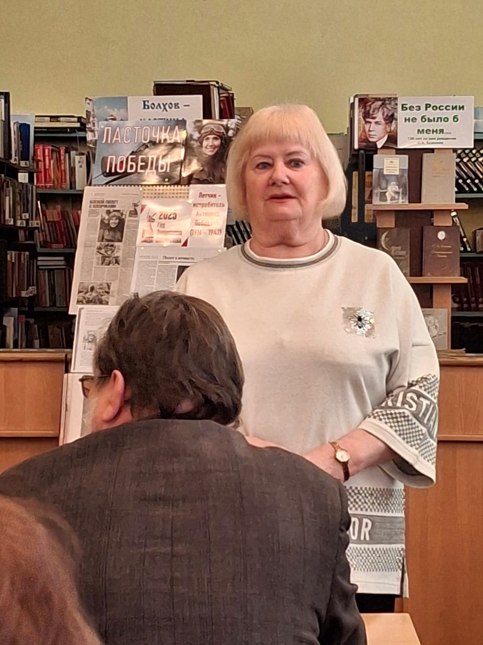 7 апреля клиенты отделения социальной реабилитации и активного долголетия БУОО «КЦСОН Болховского района» были участниками интересной встречи поколений, которая состоялась в МЦБ им. Апухтина. В читальном зале были организованы выставки: книжная- «Ласточка Победы» и выставка из музея- «Влюблённая в небо». Перед началом фильма выступили наш земляк, журналист Иван Николаевич Молчанов, Председатель Совета ветеранов войны, труда, Вооруженных Сил и правоохранительных органов Светлана Николаевна Лыженко. Фильм «Шлемофон с косичками», рассказывающий о лётчике-истребителе Антонине Лебедевой, героически сражавшейся и погибшей в небе над Болховским районом 17 июля 1943 года, произвёл незабываемое впечатление. Ей было всего 29 лет, она была парторгом летной эскадрильи. Лишь в 1982 году удалось обнаружить самолёт с останками пилота и восстановить картину последнего боя отважной лётчицы, которая считалась пропавшей без вести. Она погибла недалеко от деревни Бетово. В честь лётчицы в Болхове названа улица. В конце встречи выступил автор фильма Игорь Свеженцев, который рассказал о том, как снимался фильм и познакомил присутствующих с актрисой, сыгравшей роль Антонины Лебедевой.