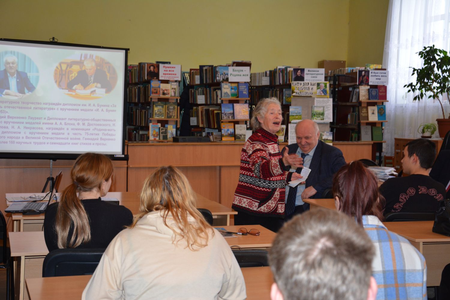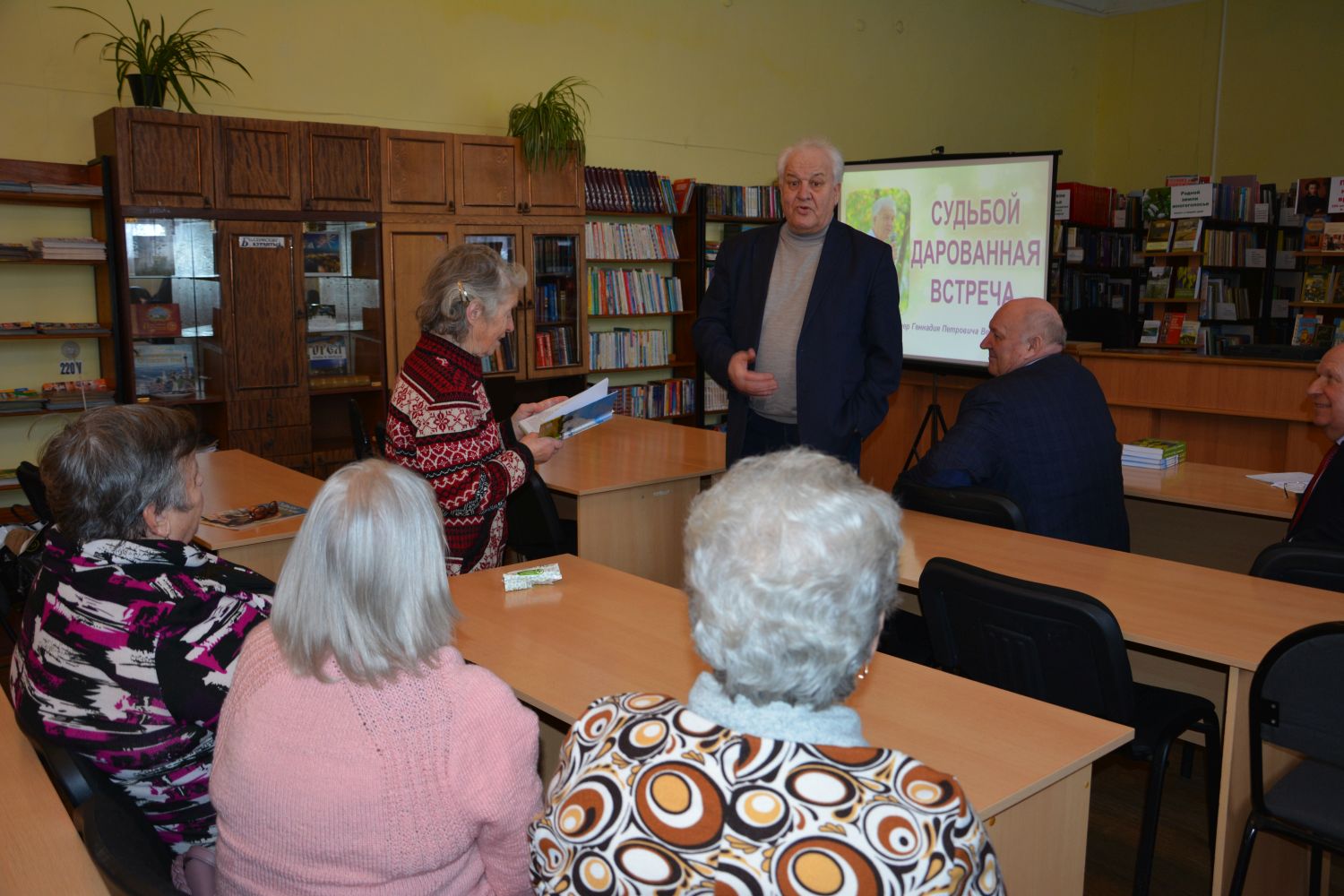 30 января у клиентов отделения социальной реабилитации и активного долголетия БУ ОО «КЦСОН Болховского района» в МЦБ им. Апухтина состоялась встреча с интересным человеком, членом Союза писателей России Геннадием Петровичем Веркеенко. Это прекрасная возможность познакомиться с творчеством писателя, пообщаться с ним. Темы произведений, написанных Г.П. Веркеенко, разнообразны: о быте близких ему по духу односельчан, о родителях и друзьях, раздумья о смысле бытия… Геннадий Петрович познакомил присутствующих со своими стихотворениями, добрыми, проникнутыми надеждой и любовью к малой родине. Помимо писательского таланта, Геннадий Петрович обладает даром замечательного рассказчика. Творческая встреча с Г.П. веркеенко подарила всем положительные эмоции и заряд отличного настроения.